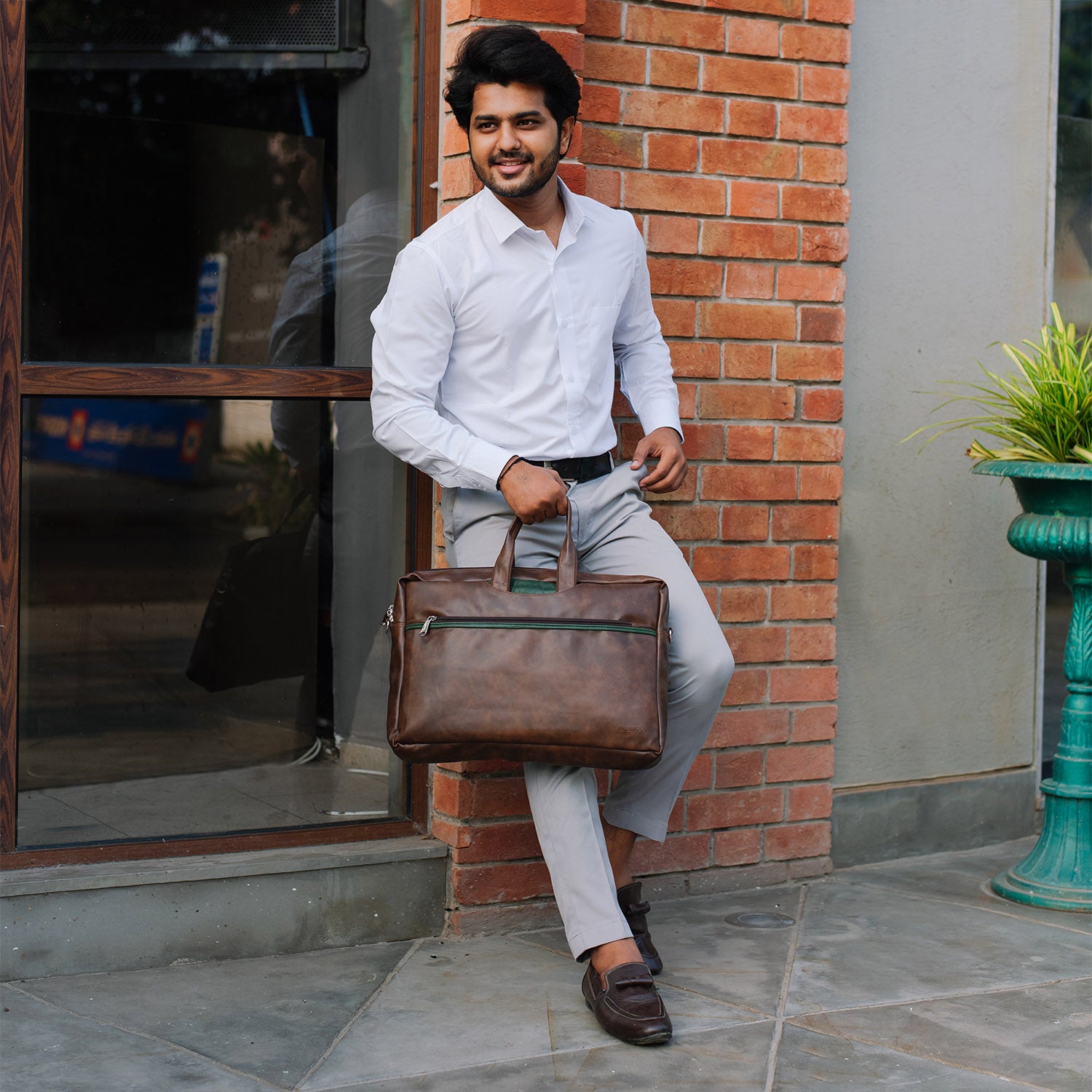 Brown & Green Non-Expandable Backpack Laptop Bag