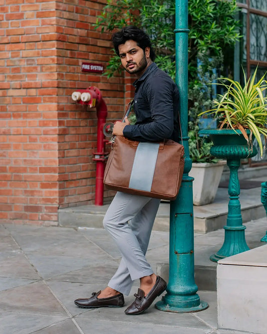 Brown & Green Non-Expandable Backpack Laptop Bag