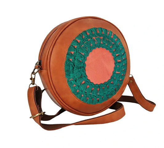 Tan & Peach Round Sling Bag