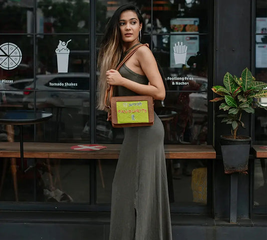 Tan & Lime Green "Main Apni Favourite Hoon" Croc Box Sling Bag