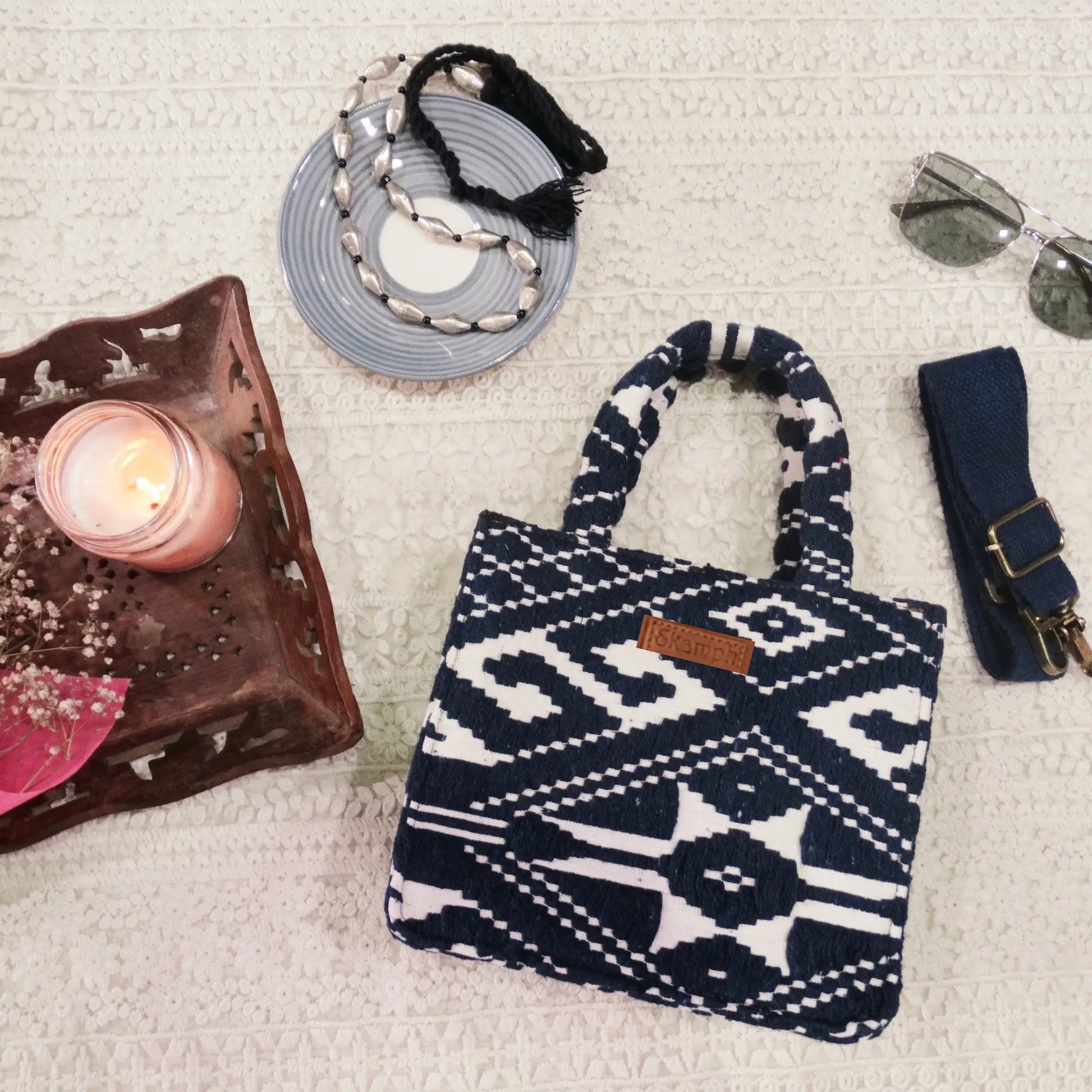 Our Bohemian Blue Sling bag from our Iconic Weave Collection is everything you need when stepping out, every day. The bag is tentatively designed to fit all your modern-day carry essentials while giving you a subtle yet classy look. In vivid colours, this crossbody bag is nifty when it has to be and vogue when you want it to be. Seal the day with just enough space. This sling is everything you need to get going, every day. Carry your essentials while preserving a subtle yet classy look. Voluminous singular compartment. Stripe printed inner lining. Adjustable as well as detachable sling strap. Handcrafted in India, this collection is made from natural, unadulterated and durable cotton-canvas fabric. Ekamph’s bags are known for their dependability and we ensure your favorite silhouettes endure the test of time. It is just enough for your day out, carrying your mobile phone, wallet, keys, mini-journals, mists and perfume, and that last thing for your ’just-in-cases’.